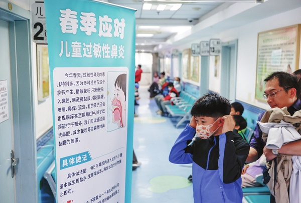 3月24日,首都医科大学附属北京中医医院,一名过敏性鼻炎患儿正在候诊。