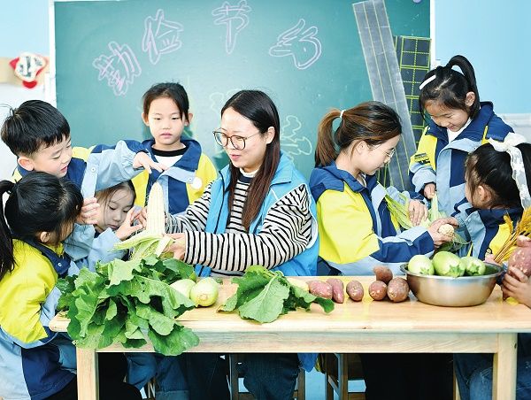 10月31日是“世界勤俭日”。10月30日,安徽省阜阳市阜南县鹿城镇骆寨社区新时代文明实践站工作人员走进辖区幼儿园,利用实物向孩子们讲解蔬菜种植的过程,引导其争做“光盘行动”践行者,从小养成勤俭节约的习惯。特约记者 吕乃明 摄