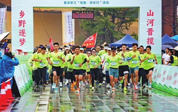 9月27日,山西省晋美乡村田园健康跑襄汾职工“悦跑·快乐行”活动在临汾市襄汾县陶寺国家考古遗址公园举行。图为参赛选手在参加乡村田园健康跑活动。