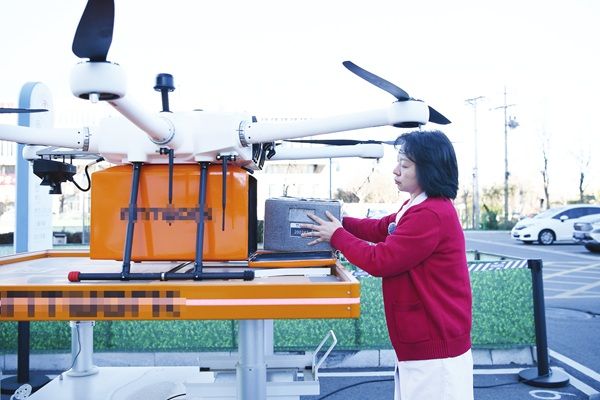 本月初,天津市首条常态化无人机运输血液制品航线正式启用,该航线已开通2条常态化专用线路,起点为天津市滨海新区塘沽中心血站,终点分别为天津市第五中心医院生态城医院、天津市中心妇产科医院滨海院区。图为12月3日,一架装载血液制品的无人机抵达天津市中心妇产科医院滨海院区。中新社 供图