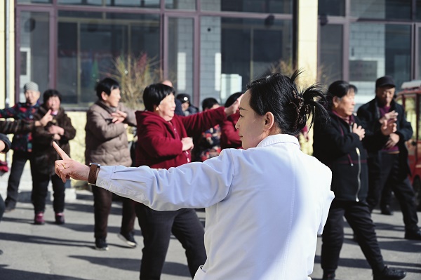 春节期间,山西省晋中市祁县昭馀镇圪垛村乡村医生范捷花开出一剂特殊“处方”——在文化广场上带领村民们练习八段锦,舒展肢体,预防腰酸背痛、高血压等“节日病”。