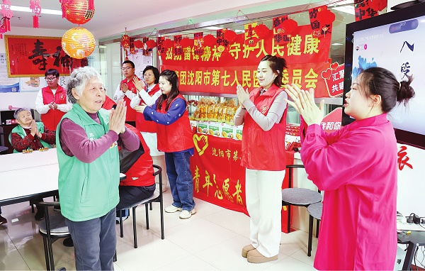 在“3·5”学雷锋纪念日即将到来之际,辽宁省沈阳市第七人民医院开展“弘扬雷锋精神 守护人民健康”志愿服务活动。全院青年医务工作者踊跃参与,在服务奉献中书写新时代的雷锋故事。图为医务人员在指导老人健身。特约记者 郭睿琦 齐红梅 摄影报道