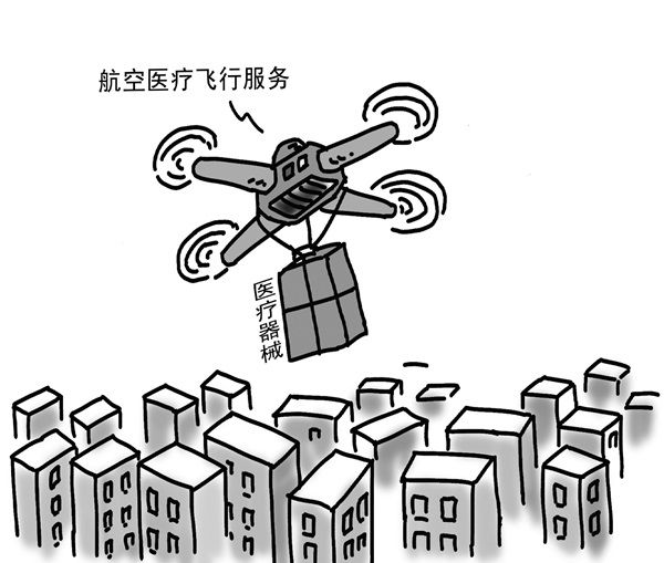 近期,一些综合性医院、急救中心等,借助无人机或直升机等各种类型的航空器转运患者,运送医务人员,投送血液、药品、设备等医疗物资,在探索低空经济发展的同时,更好保障群众健康。罗琪 绘