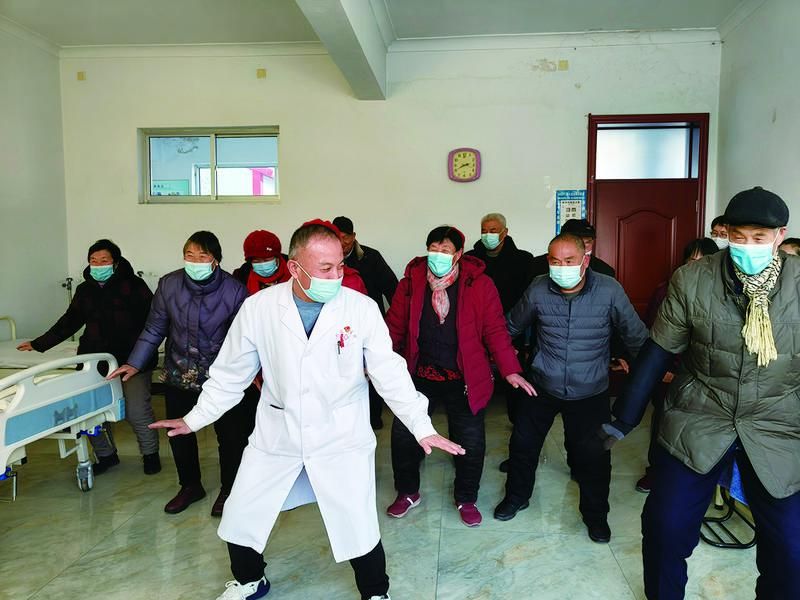 “膝弯曲,保重心;学企鹅,外八字;手臂伸,在两侧。”近日,山东省桓台县荆家镇卫生院主任医师郑建雷在荆家镇后孙村带领老年人练习“企鹅步”。