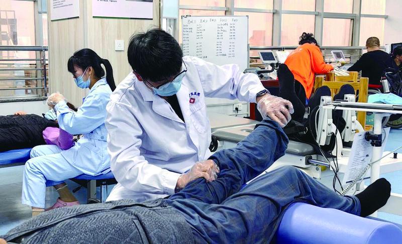 滕州市中医医院康复医学科医生在为老年患者进行康复治疗。赵连君摄
