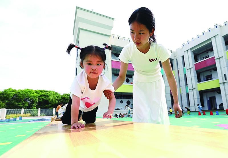 近年来,湖北省竹山县宝丰镇第二幼儿园践行“健康第一”的教育理念,保障幼儿每日户外活动时间不得少于2小时。图为近日该园孩子们在老师的带领下开展户外体育游戏活动。 朱本双 方友春 摄影报道