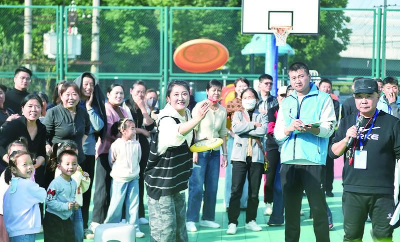 为丰富群众文化生活,提升群众健康意识,近日,安徽省合肥市庐阳区大杨镇草塘社区举办全民健身趣味运动会。图为扔飞盘比赛现场。 葛传红 丁晓云摄影报道