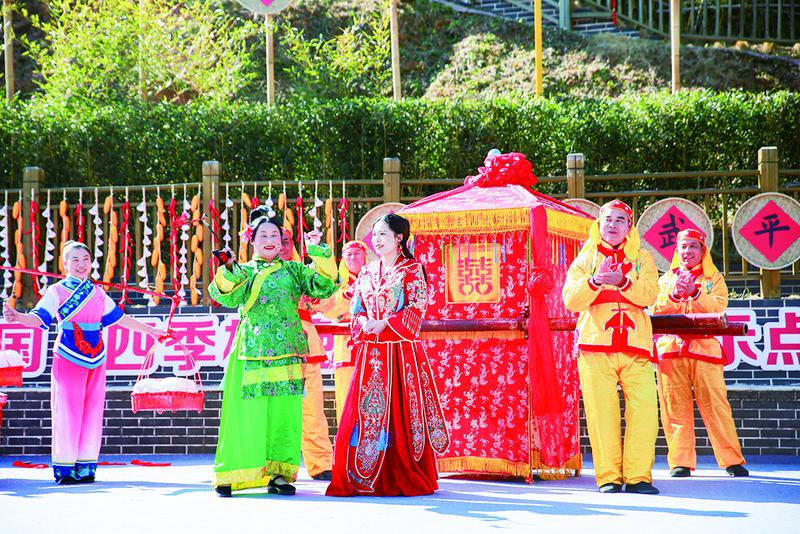 冬日闽西,群山含黛。梁野山脉,又称“梁野山”,横亘于福建省龙岩市武平县境内,是武夷山脉的最南端。近日,在武平县桃溪镇桃溪村文化广场上,上演了一场村民自己的“村晚”,火热的氛围驱散了数九的寒意。桃溪村是文化和旅游部着力打造的全国“四季村晚”冬季示范展示点之一。歌舞欢腾中,第8个节目——情景表演《吴老太唱新风》登场了。台上,“新娘刘慧”为婚事拒收高价彩礼,认为夫妇二人幸福美满才是最重要的;台下,一位面容黝黑、眼神炯亮的半百汉子看得格外专注,嘴角带着笑意,不时用力鼓掌。他叫刘远兴,是桃溪村党支部书记。一年前,刘远兴的女儿刘慧,以“零彩礼”的方式,嫁给了邻村小伙刘庆发。这在曾被婚嫁旧俗所困的武平北部山区,激荡起层层涟漪。