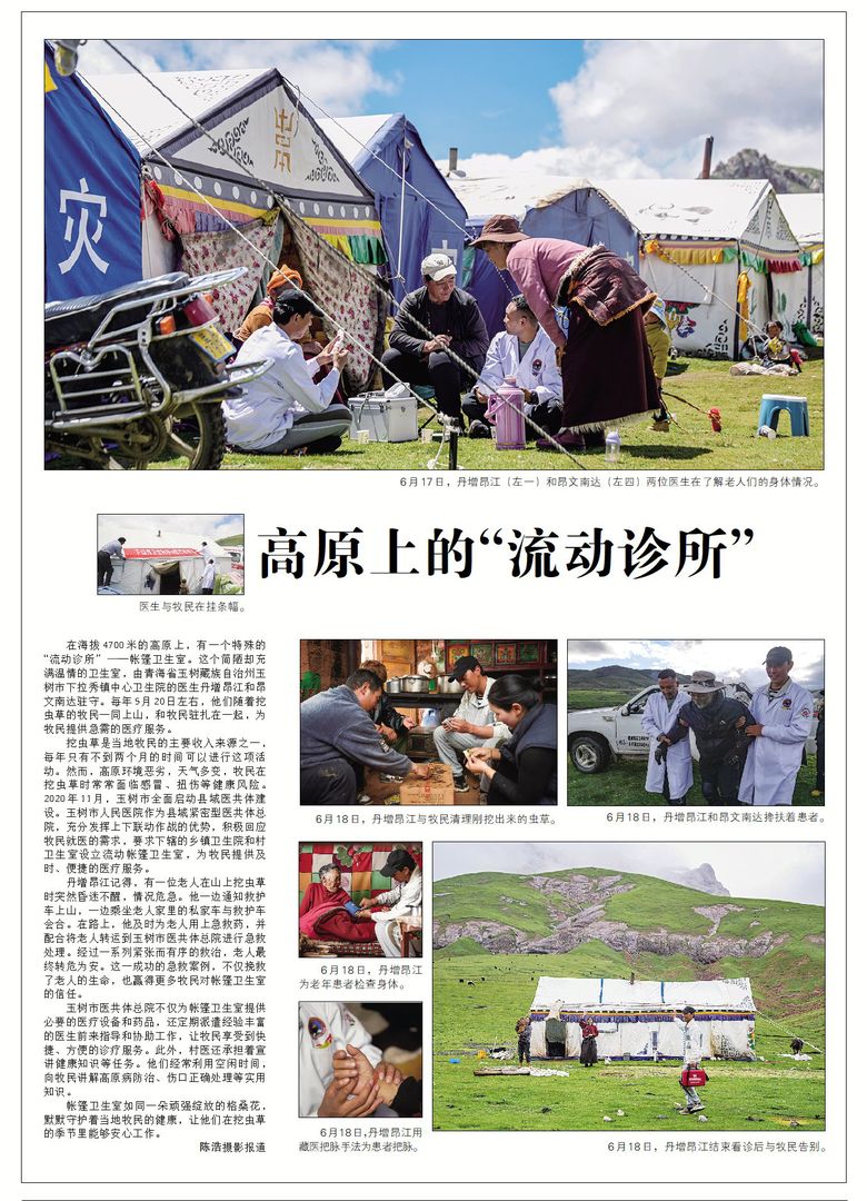 在海拔4700米的高原上,有一个特殊的“流动诊所”——帐篷卫生室。这个简陋却充满温情的卫生室,由青海省玉树藏族自治州玉树市下拉秀镇中心卫生院的医生丹增昂江和昂文南达驻守。每年5月20日左右,他们随着挖虫草的牧民一同上山,和牧民驻扎在一起,为牧民提供急需的医疗服务。