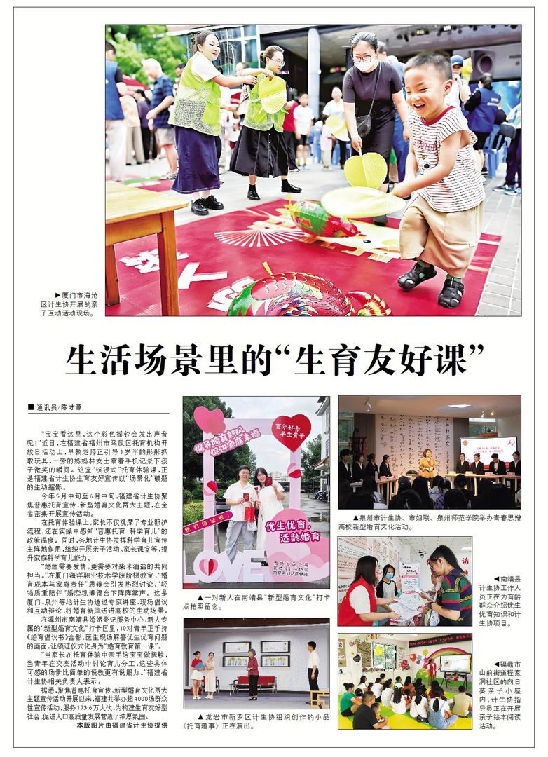 今年5月中旬至6月中旬,福建省计生协聚焦普惠托育宣传、新型婚育文化两大主题,在全省密集开展宣传活动。