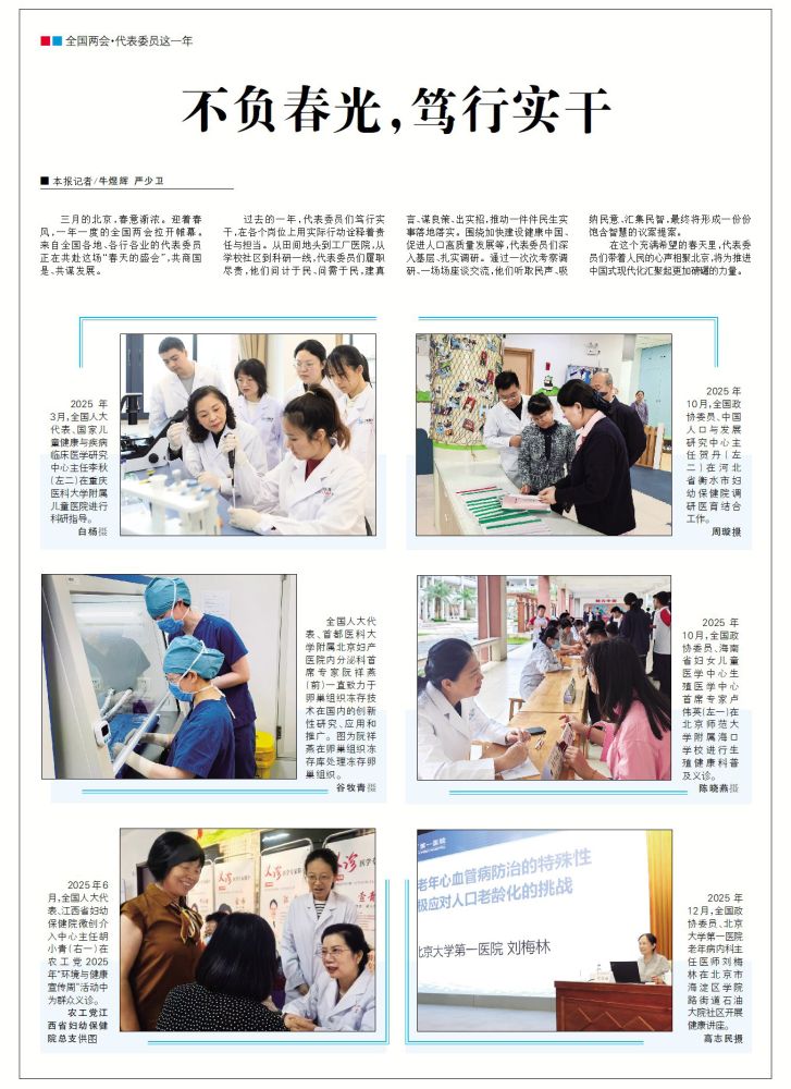 过去的一年,代表委员们笃行实干,在各个岗位上用实际行动诠释着责任与担当。从田间地头到工厂医院,从学校社区到科研一线,代表委员们履职尽责,他们问计于民、问需于民,建真言、谋良策、出实招,推动一件件民生实事落地落实。围绕加快建设健康中国、促进人口高质量发展等,代表委员们深入基层、扎实调研。通过一次次考察调研、一场场座谈交流,他们听取民声、吸纳民意、汇集民智,最终将形成一份份饱含智慧的议案提案。