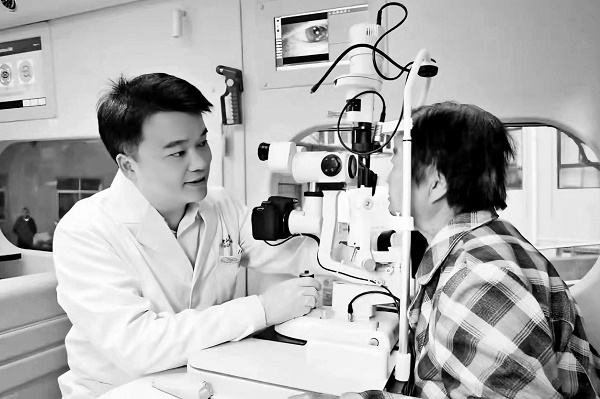 林浩添教授为患者做检查。 中山大学中山眼科中心供图