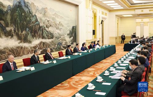 3月3日,政协第十四届全国委员会第一次会议主席团第一次会议在北京人民大会堂举行。主席团会议主持人王沪宁主持会议。新华社记者 王晔 摄