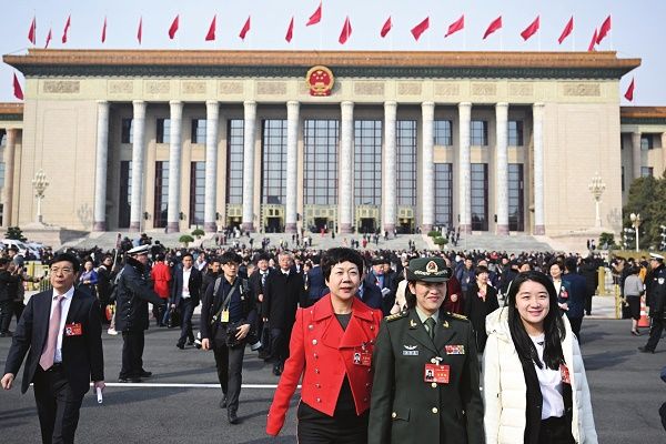 3月10日,全国政协十四届二次会议闭幕后,全国政协委员走出人民大会堂。