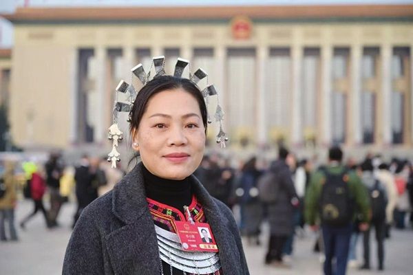 3月5日,十四届全国人大三次会议开幕。全国人大代表、海南省白沙县医疗集团牙叉社区分院副院长韦小丽身着黎族服饰,来到人民大会堂参会。今年是她作为全国人大代表履职的第三年。