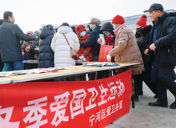 2月5日,天津市宁河区爱卫办在芦台大集上开展冬季爱国卫生运动宣传活动,向赶大集的群众发放健康宣传资料,普及“三减三健”等健康理念。