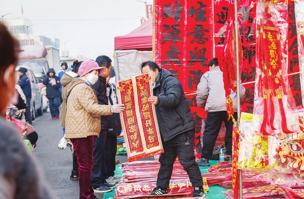 2月5日,天津市宁河区芦台大集上,赶集群众挑选春联、置办年货,在洁净有序的集市环境中,感受着“干干净净迎新春”的浓厚年味。