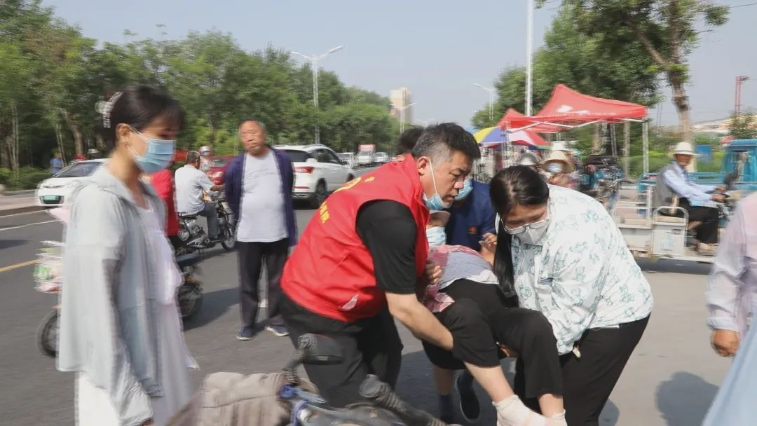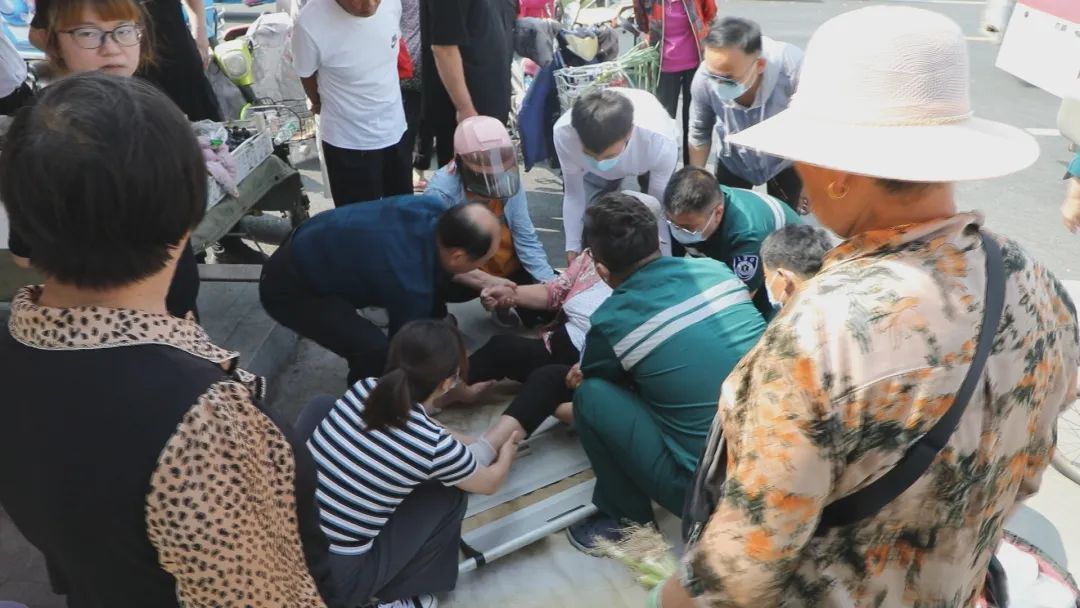 6月13日,山东省利津县中心医院医务人员在该县三里大集开展献血者日宣传活动时,旁边发生一起车祸。医护人员们毫不犹豫地奔跑到事故现场,齐心协力救助伤者,用实际行动诠释了“救死扶伤”的医者精神。