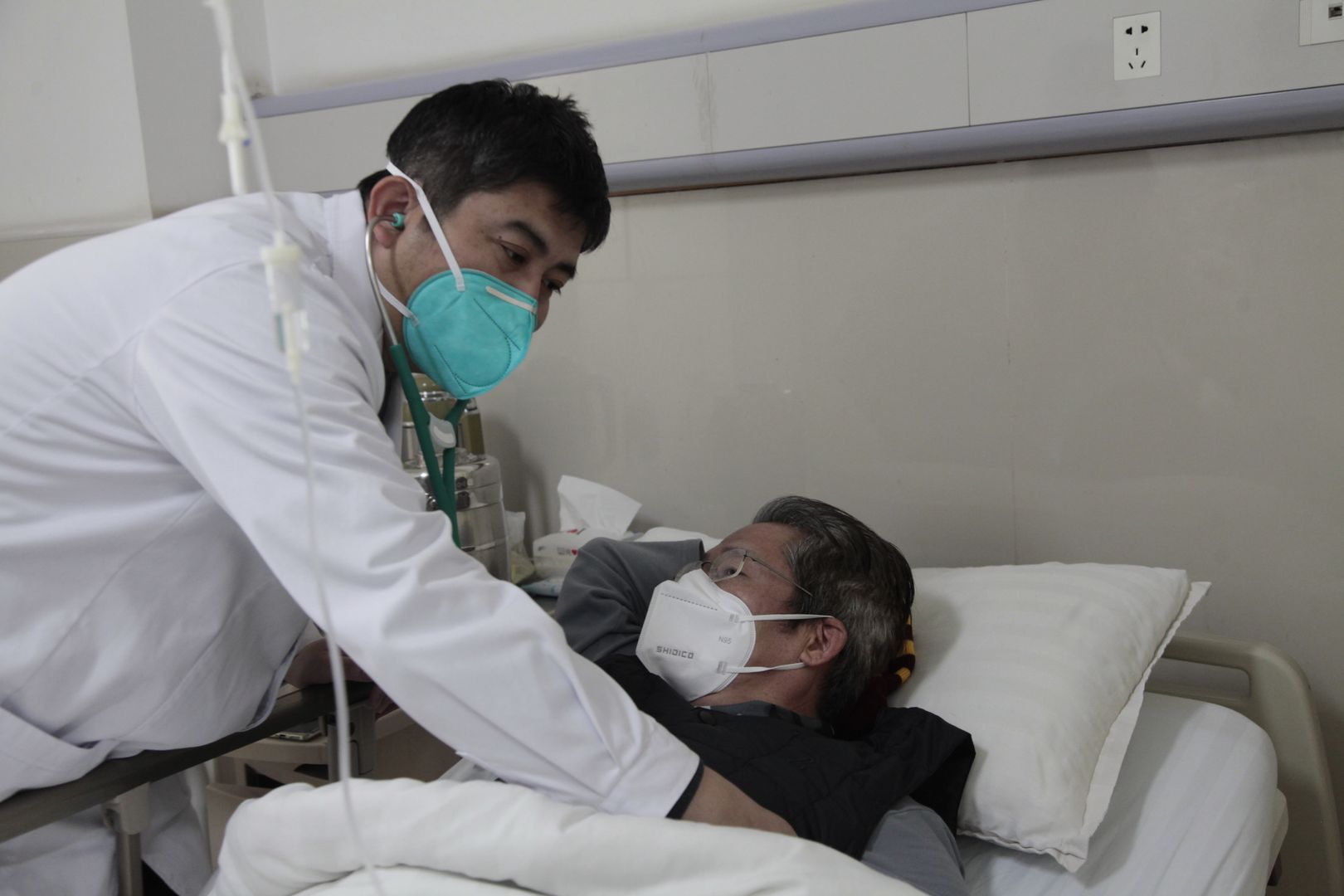 朱建波为新冠病毒感染者检查身体