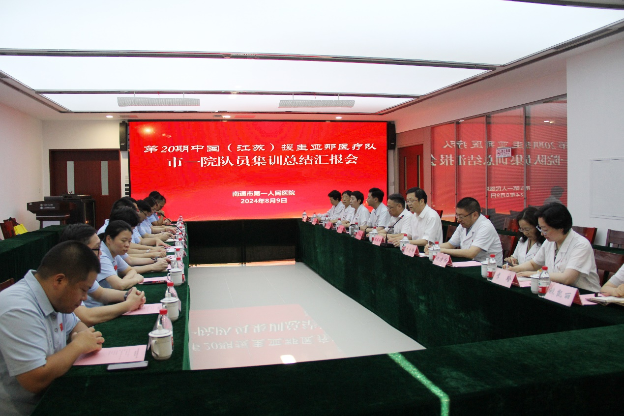 近日,江苏省南通市第一人民医院举行第20期中国(江苏)援圭亚那医疗队本院队员集训总结会。自今年4月开始,在江苏省卫生健康委的统一部署下,第20期中国(江苏)援圭亚那医疗队在江苏南京基地进行了为期4个月的全脱产集中培训。培训内容涵盖思想政治教育、英语沟通能力提升、综合素质能力提升、安全防控能力提升等方面。目前,医疗队已结束集训,将于9月21日踏上援圭亚那的征程,开启为期1年的援外医疗工作。