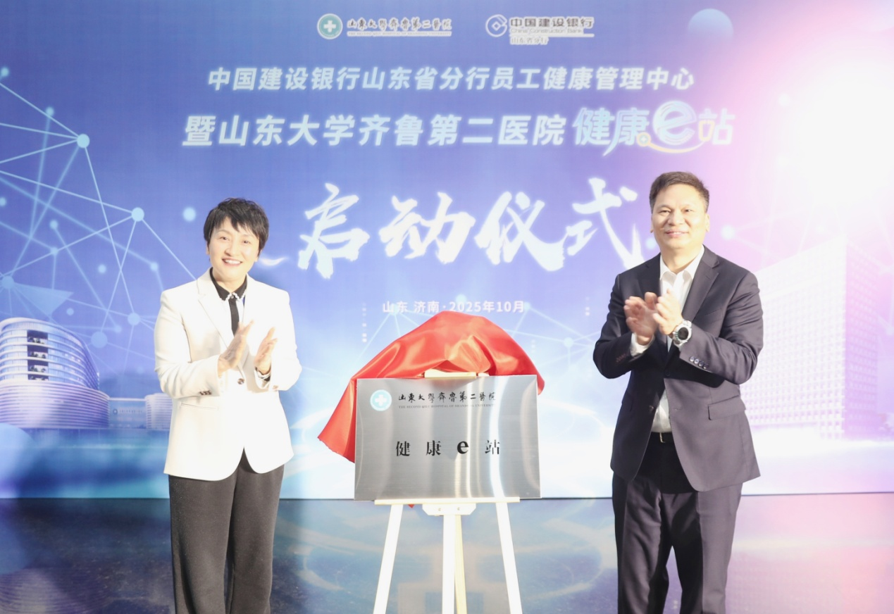 近日,山东大学齐鲁第二医院(简称齐鲁二院)与中国建设银行山东省分行(简称建行山东省分行)共同举办了建行山东省分行员工健康管理中心暨齐鲁二院健康e站启动仪式。建行山东省分行党委书记、行长文志军,建行济南分行党委书记、行长姜学军,中央广播电视总台山东总站党委书记何盈,齐鲁二院党委书记柳丽华、党委副书记孟彦等出席仪式,建行山东省分行党委委员、副行长刘春龙主持仪式。