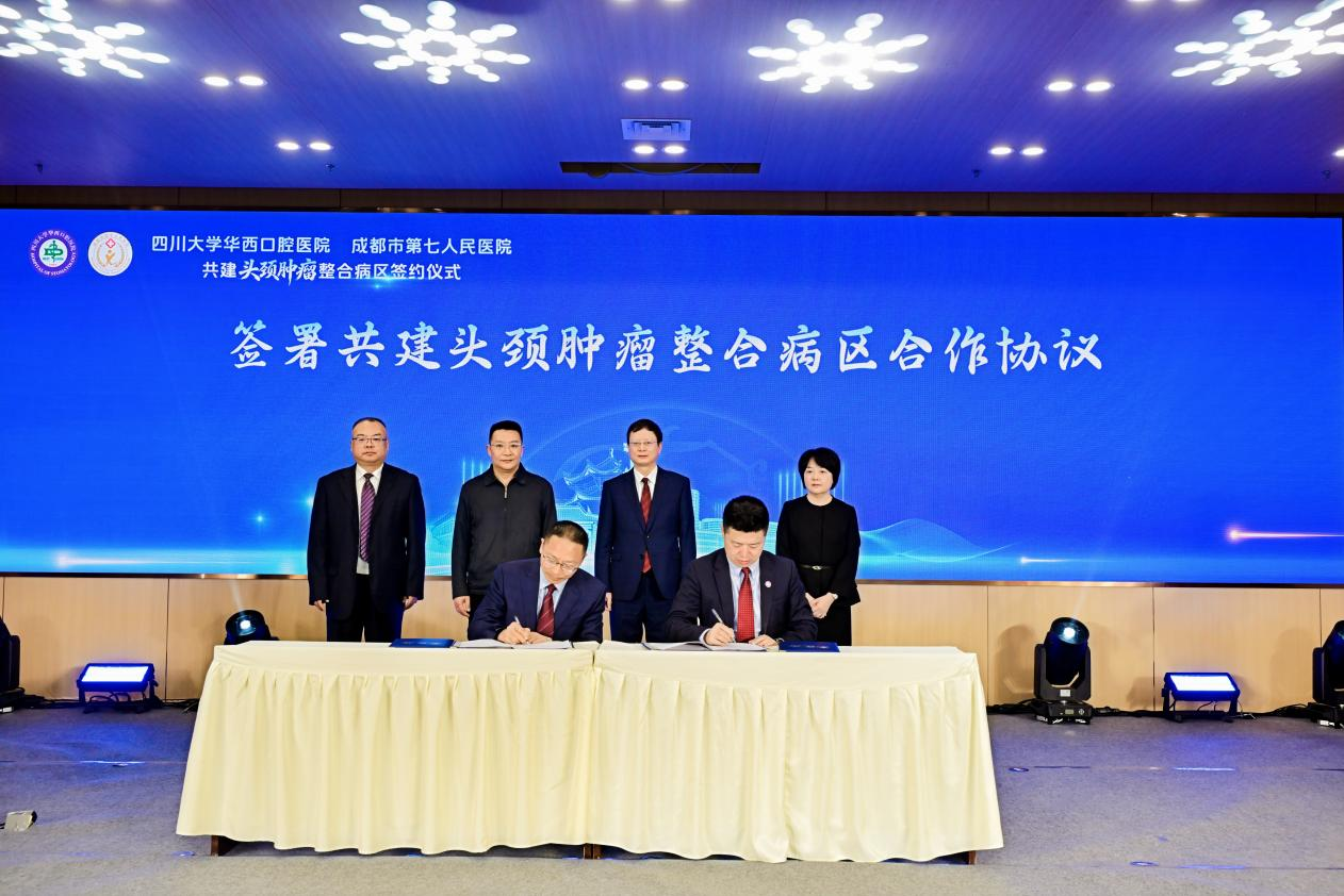 作为国家卫生健康委委属委管三级甲等专科医院、国家口腔医学中心、国家口腔疾病临床医学研究中心,四川大学华西口腔医院在头颈肿瘤防治领域优势明显。成都市第七人民医院作为成都市肿瘤医院、成都市癌症防治中心,在肿瘤放射治疗、康复治疗及全周期健康服务方面具有丰富经验。双方签约后,将共同探索头颈肿瘤专病中心“院—院”共建模式,打造集诊疗、康复、科研、教学于一体的整合式医疗服务平台。双方将通过专家坐诊、远程会诊、人才梯队建设、联合科研攻关等多元形式,实现优质医疗资源精准对接,打破院际壁垒,持续提升区域头颈肿瘤诊疗同质化水平,为健康四川、健康成都建设注入新活力。