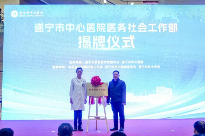 近日,四川省遂宁市中心医院举行医务社会工作部揭牌仪式,标志着医院人文医疗建设迈入新阶段。