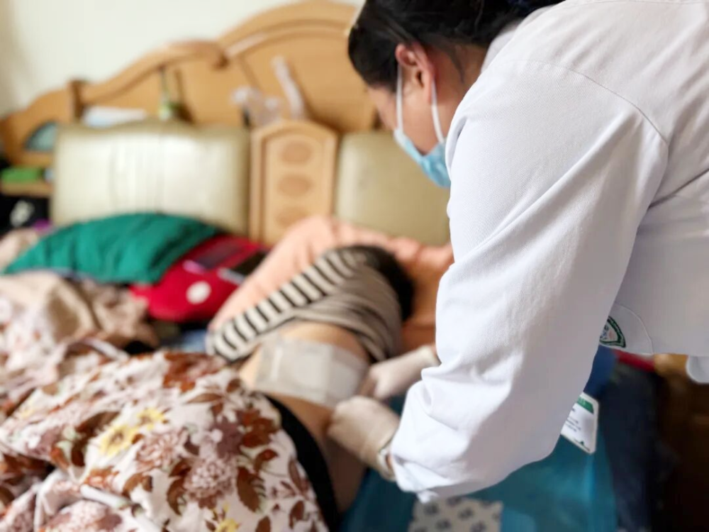 无需忍受路途颠簸,无需家人请假陪同,专业护理人员即可上门换药。近日,四川省成都市双流区第一人民医院(四川大学华西空港医院)门诊部主管护师李娇携带护理包,准时来到刚做完腰椎手术的张女士家中,为其提供上门换药服务,赢得了患者及其家人的好评。