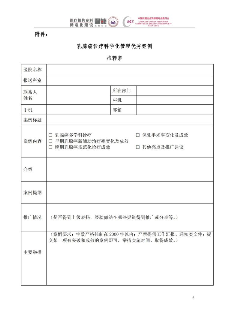《乳腺癌诊疗科学化管理优秀案例推荐表》下载: /uploads/file/20220531135023_36792.docx