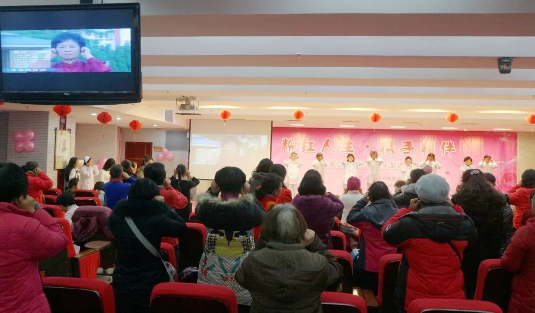 在乳腺科举办的漓江粉红丝带俱乐部活动上,病友与医务人员一同表演健身康复操