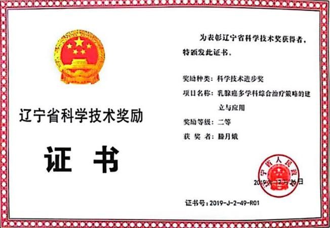 《建立乳腺癌多学科诊疗模式》获得2019年辽宁省科技进步奖二等奖