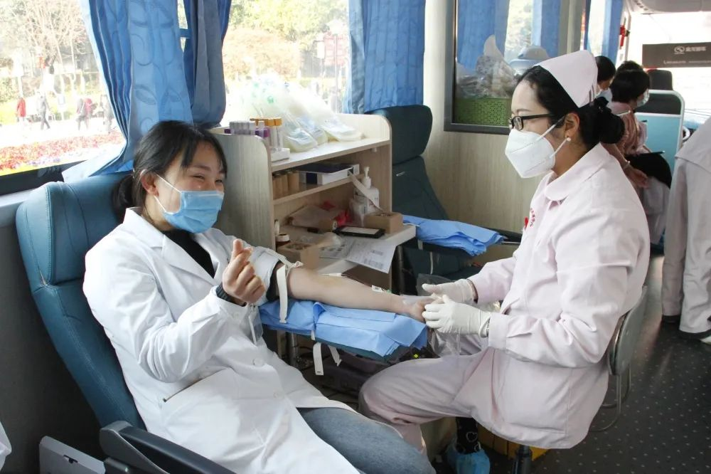 献血现场,有多年坚持献血的“老将”,也有满腔热情初次献血的“新兵”;有下夜班匆匆赶来的护士,也有刚刚查完房的临床医生;有坚守在临床后方的行政后勤科室职工,还有朝气蓬勃的医学生,大家自发在献血车前排好队。