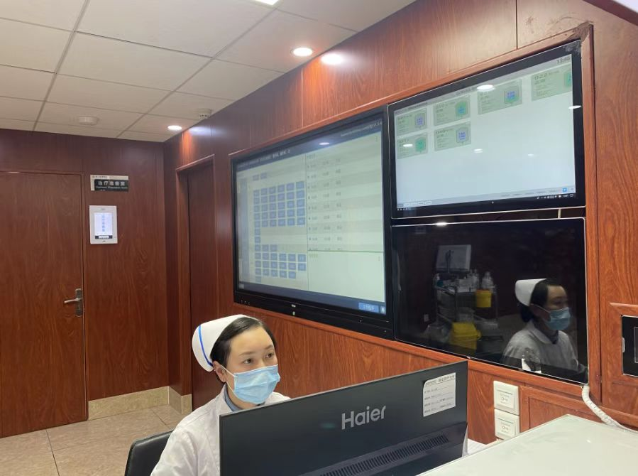 “通过信息化系统的引入,医务人员在查看患者信息、核对护理情况时更加准确,患者的安全得到了有效保障。”医院普外科护士长张晓红介绍,护士站的智能看板是医护人员专属系统,实时更新患者状态,具有患者叫醒提醒、输液监测呼叫、护士交接班等功能。护士站还装有可视电话,显示病区患者列表,与病床屏幕进行语音、视频呼叫对讲,提高了护士管理效率。