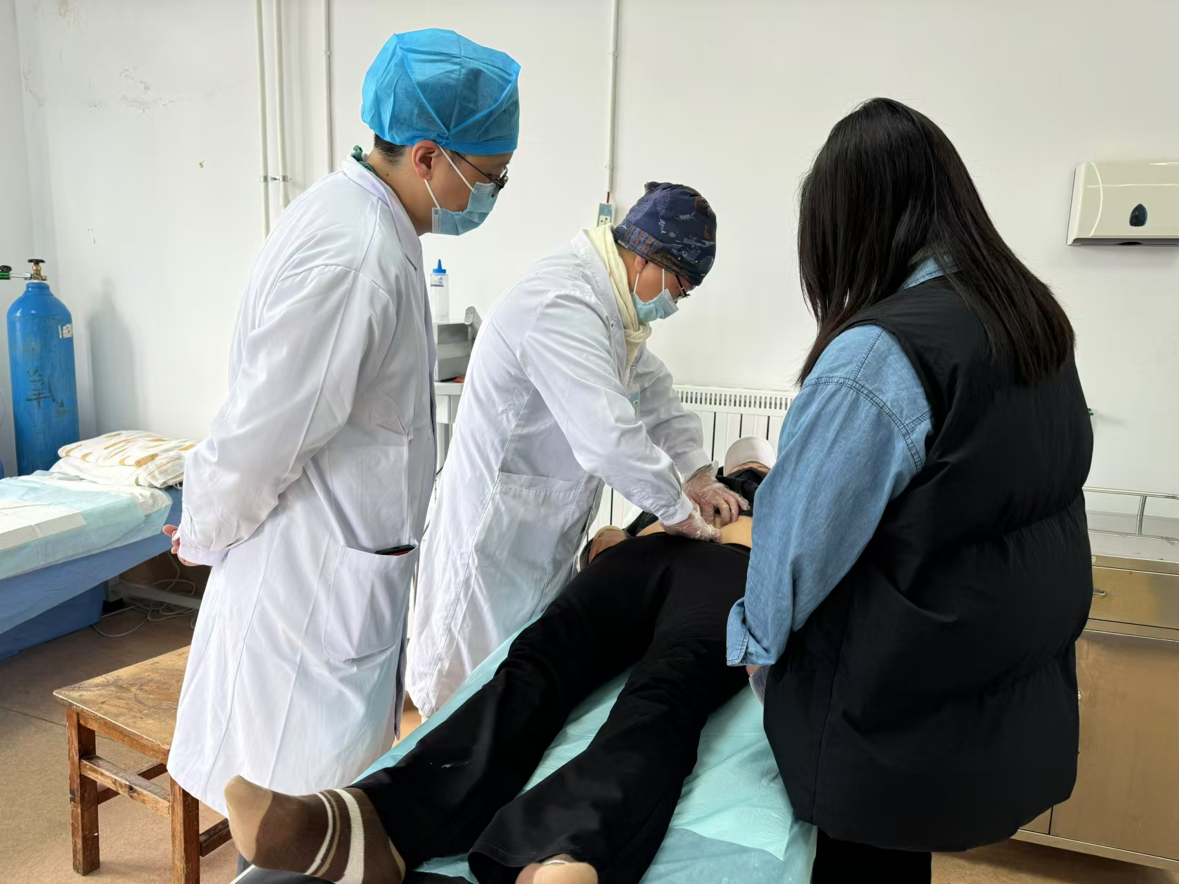 10月11日,得知省一院派出的巡回医疗队正在迪庆州人民医院义诊,刘女士带着厚厚一沓检查报告找到了医疗队队员、消化内科主治医师田瑞清。在看过检查结果后,田瑞清认为消化系统造成小腹疼痛的可能性不大,建议患者补充腹部CT检查,并针对其便秘情况开了一些药物。在问诊过程中,得知患者已经被疼痛折磨了很长时间后,田瑞清立刻带着患者找到了医疗队副队长、疼痛科副主任医师宁杰。宁杰通过排查,发现患者有骶髂关节紊乱的问题,认为这很可能是患者小腹疼痛的主要原因。于是,当场在门诊开展了小针刀治疗。不到10分钟,施针治疗就已经结束,患者自述疼痛明显减轻。第二天,当宁杰对患者进行回访时,听到患者和家属商量准备到昆明做胆结石手术,于是又将患者带到了医疗队队员、肝胆胰外科副主任医师王军的面前。王军查看了患者的检查情况后,确认患者属于多发性胆结石,在当地就能实施手术。征得患者和家属的同意后,10月14日,王军带领当地团队成功为患者实施了腹腔镜胆囊切除手术。术后患者恢复良好,于次日出院。巡回医疗队队员们表示,希望通过这一病例,帮助当地医务人员拓宽多学科合作解决疑难病例的视野和思路,助力当地医院进一步提升综合救治能力。患者和家属也对巡回医疗队非常满意,称这是他们首次遇到的连续为病患寻找解决方案的医疗团队。