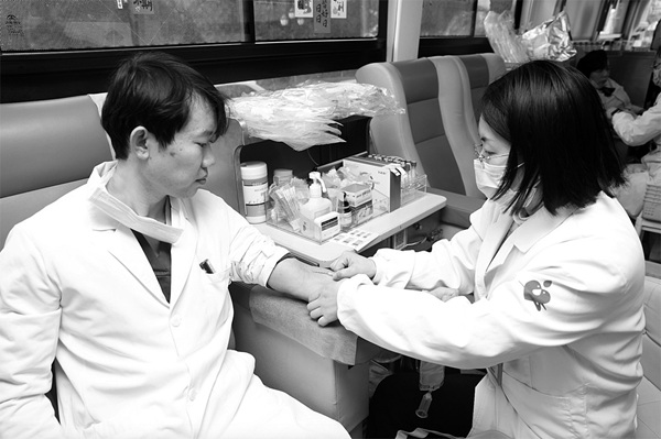 浙江省人民医院坚持每年开展员工无偿献血公益活动。图为该院员工正在献血。 (浙江省人民医院 供图)