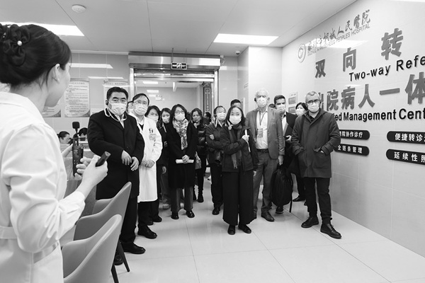 专家代表团在苏州市相城人民医院双向转诊中心参观调研。(苏州市卫生健康委 供图)