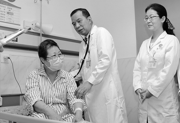 刘启发(中)在病房为患者诊疗。
