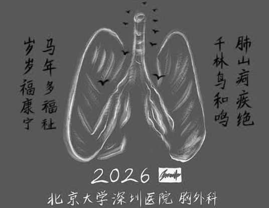 这本让大家交口称赞的台历封面别具巧思:写意笔墨勾勒出人体肺部的轮廓,其线条舒展,形态宛若层峦叠嶂,几只飞鸟轻盈掠过其间。两侧题写:“肺山疴疾绝,千林鸟和鸣;马年多福祉,岁岁福康宁。”诗词意味既贴合胸外科的专业属性,又饱含对患者早日康复、平安顺遂的美好期许。“肺是生命的‘山’,而疾病不过是山间云雾,终会散去。”王俊彬总对患者这样说。