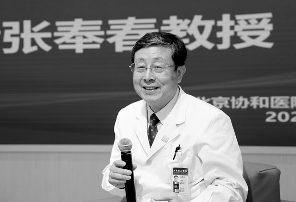 1982年,张奉春正式入职北京协和医院时,医院实行“15小时值班制”。从早上7时到晚上10时,医生都要待在病房里。“那时心无旁骛,每天泡在病房,回到宿舍也想着患者,就连中午睡觉、晚上休息,都戴着听诊器给自己听心脏、听肺。”张奉春笑着说。他还记得那时学叩诊,大家把自己的手都敲破了,还贴上胶布继续练。
