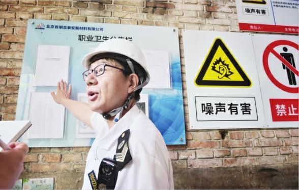 6月20日,北京市、区两级卫生监督执法机构启动夏季防暑降温专项监督检查。在首钢吉泰安新材料有限公司内,北京市昌平区卫生健康监督所执法人员向记者介绍相关事项。本报记者 张丹 摄