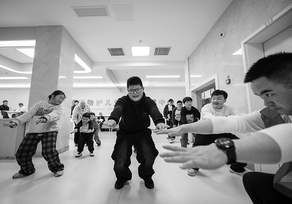 2025年3月15日,在浙江省湖州市安吉县天子湖镇中心卫生院举办的第5期儿童健康管理活动中,孩子们在社会体育指导员指导下做运动。