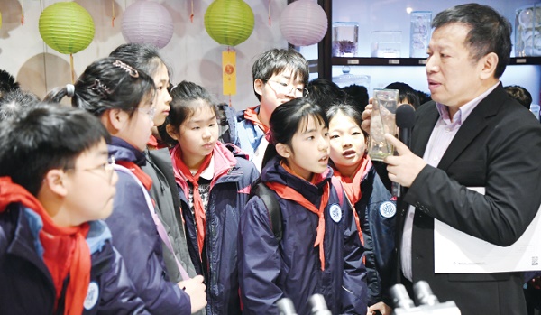 1月28日,在复旦大学上海医学院内的人体科学馆,科学馆馆长周国民教授给复旦大学附属徐汇实验学校五年级学生讲解人体奥秘。