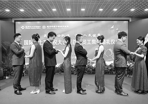 近日,通用环球中铁邳州医院为该院护士精心筹备了一场“爱在铁医、情定终身、医路有你、幸福启航”集体婚礼。