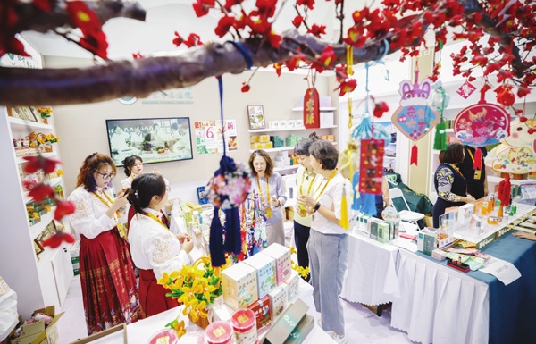 9月12日,北京中医医院展区,充满传统韵味的展位布置精美,各类特色产品琳琅满目,吸引众多参观者观看、交流。