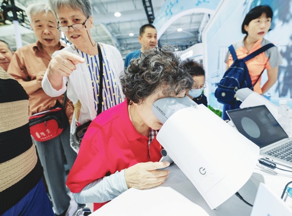 9月13日,参观者体验眼底相机,感受医疗科技带来的便捷与精准。
