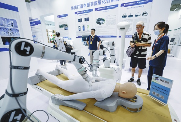 该展区有关负责人介绍,这款由西苑医院参与研发的中医机器人不仅实现了名医手法的数字化传承,还能基于医生处方开展个性化治疗。目前,该机器人已能实施紧张型头痛的标准化治疗,并在拓展更多病种的治疗。