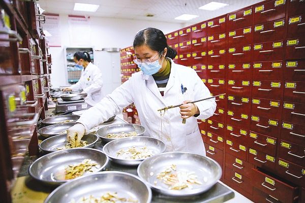 天气渐寒,此时正是冬令进补的好时机。江苏省南通市如皋市中医院加强中药材采购储备,满足群众购药用药需求。图为12月17日,如皋市中医院中药师在抓取中药材,配制养生保健药剂。视觉中国 供图
