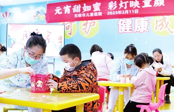 2月11日,江苏省无锡市儿童医院举办“元宵甜如蜜彩灯映童颜”主题活动。医护人员与住院儿童共同制作精美的灯笼,营造温馨、欢乐的节日氛围。