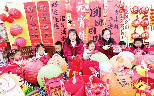 3月3日元宵节,为让小朋友们体验元宵节习俗文化,江苏省连云港市东海县幼儿园西双湖分园组织老师和小朋友开展猜灯谜、扎花灯等丰富多彩的活动。通讯员 张正友 董红敏 特约记者 程守勤 摄影报道