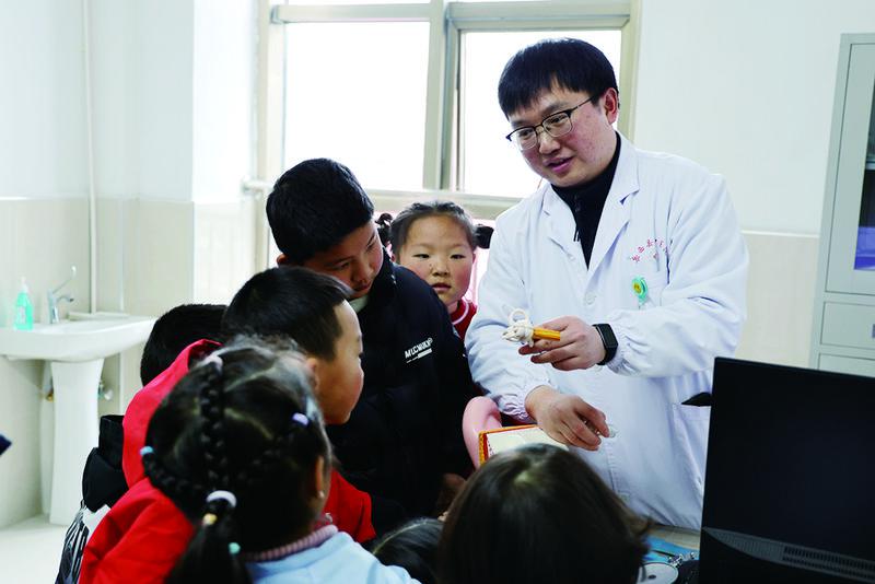 近日,安徽省岳西县中医院举办“听见美好,守护童音”体验营活动。图为医生在为孩子们讲解耳朵的相关知识。冯润青 陈静摄影报道